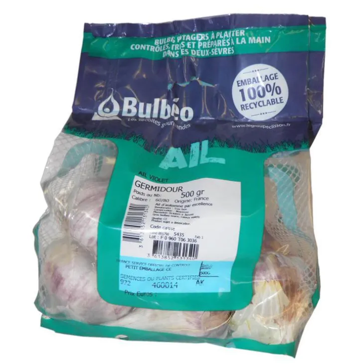 | Conseils d’entretien | . Plantez de préférence les caïeux (petits bulbes secondaires) à l’automne (Oct.-Nov.) si votre sol est bien drainé, sinon, attendez le début du printemps.Pour les régions aux climat assez doux vous pourrez même commencer à planter vos caïeux dès Jan.-Fév..Choisissez les caïeux se trouvant sur l’extérieur plutôt que ceux de l’intérieur car ils sont plus charnus et vous garantirons une meilleur levée.Plantez en ligne en espaçant chaque sillon d’une vingtaine de centimètres.Disposez chaque caïeu à quelques centimètres de profondeur, la pointe (germe) vers le haut.Espacez les caïeux de 10 centimètres environ pour leur laisser la place de se développer.Recouvrez ensuite d’une terre légère puis arrosez régulièrement.L’ail a besoin de beaucoup de soleil.L’ail n’aime pas les sols trop humides, si tel est le cas, mélangez votre terre avec du sableAvant de récolter l’ail, pensez à nouer les tiges qui commencent à jaunir de manière à stopper leur développement et favoriser la concentration de la sève dans la tête d’ail.Avant de stocker l’ail, faites le sécher quelques jours au soleil.Ensuite, nettoyez-le et conservez-le dans un endroit sec, aéré et plutôt frais.