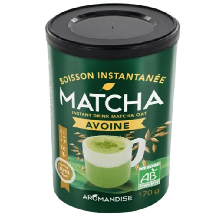 | Composition | poudre d’avoine instantanée* 88% (avoine*, sel), sucre d’agave*, poudre de matcha* 5%. * Produit issu de l’agriculture biologique.