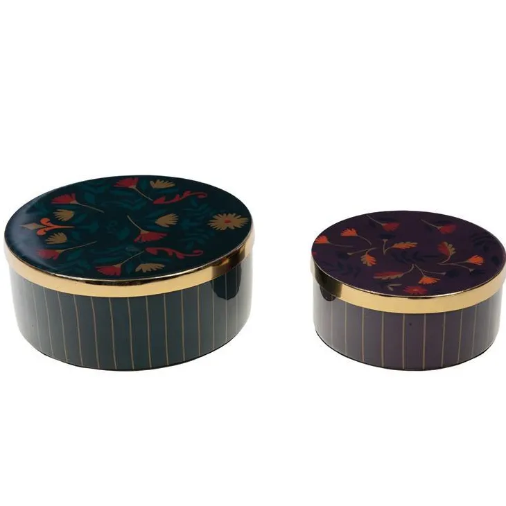 Porte-bougie forme feuille en métal vert et or – Ø 13 x 4 cm