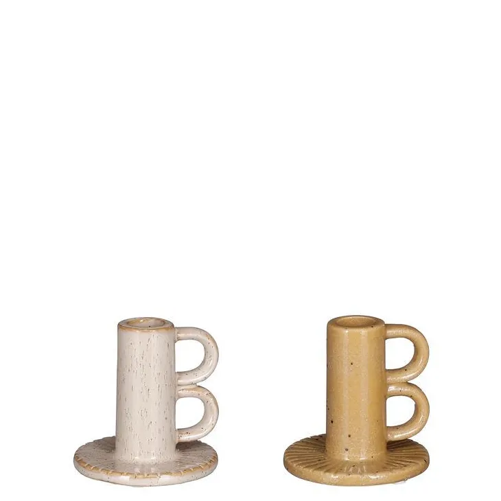 Porte bougie en céramique bicolore naturel/vert petit modèle – Ø 10 x H 17,5 cm