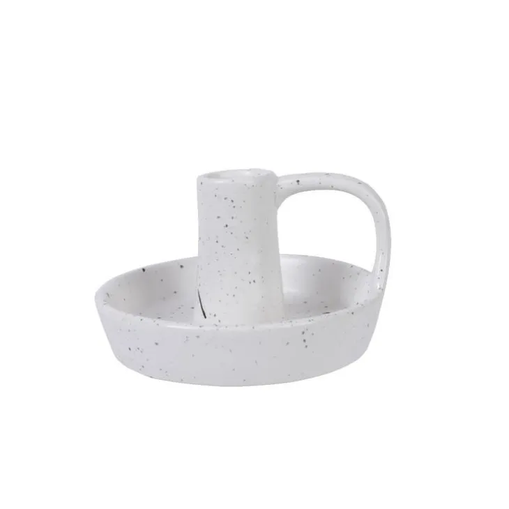 Porte bougie en céramique bicolore naturel/vert petit modèle – Ø 10 x H 17,5 cm