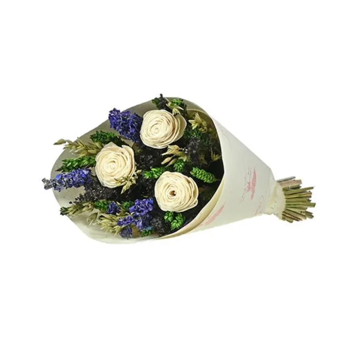 Bouquet de fleurs séchées Sola S coloris vert bleu - H 50 cm