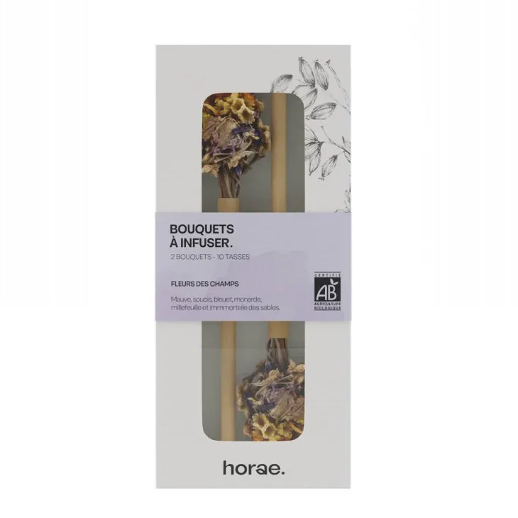 | Composition | Ingrédients : fleur de mauve* (Malva silvestris), fleur de souci* (Calendula officinalis), fleur de bleuet* (Centaurea cyanus), fleur de lavande* (Lavandula officinalis), fleur de millefeuille* (Achillea millefolium), fleur d’immortelle des sables* (Helichrysum arenarium), fleur de monarde* (Monarda didyma). La proportion de chaque ingrédient peut varier. *Ingrédients issus de l’agriculture biologique
