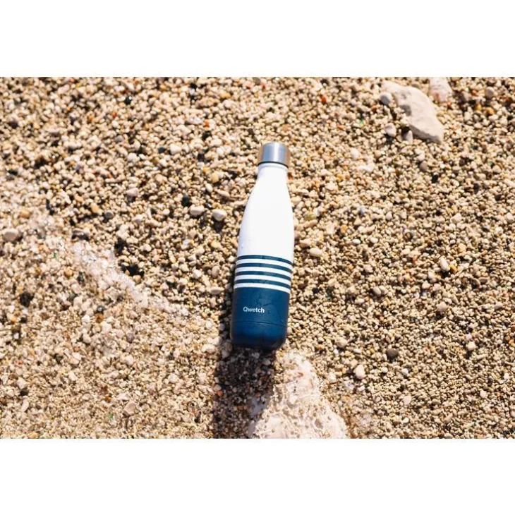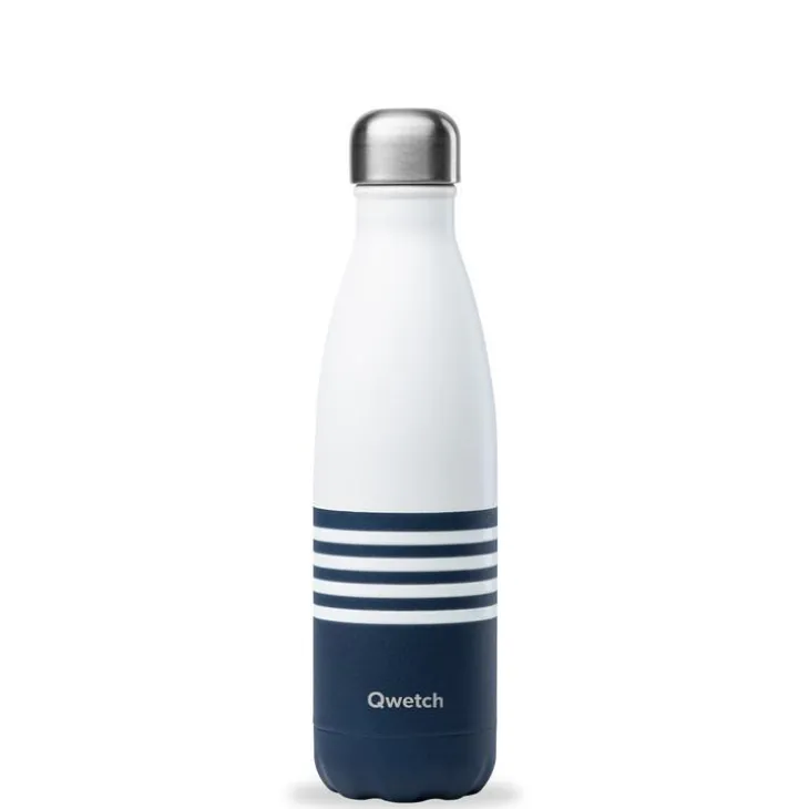 Bouteille isotherme Qwetch en inox Marinière bleu blanc 500 ml
