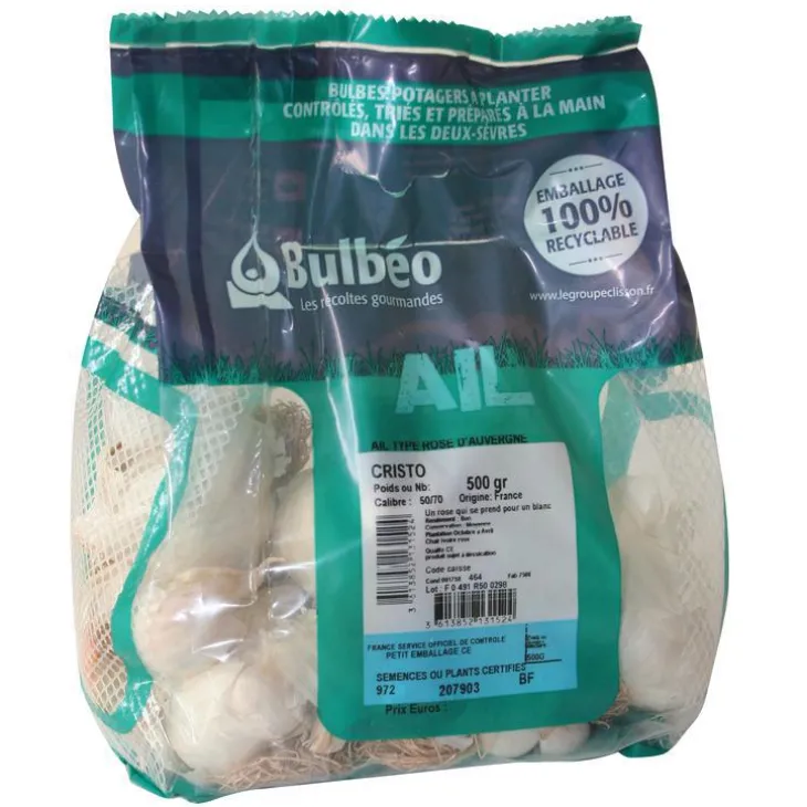 | Conseils d’entretien | . Plantez de préférence les caïeux (petits bulbes secondaires) à l’automne (Oct.-Nov.) si votre sol est bien drainé, sinon, attendez le début du printemps.Pour les régions aux climat assez doux vous pourrez même commencer à planter vos caïeux dès Jan.-Fév..Choisissez les caïeux se trouvant sur l’extérieur plutôt que ceux de l’intérieur car ils sont plus charnus et vous garantirons une meilleur levée.Plantez en ligne en espaçant chaque sillon d’une vingtaine de centimètres.Disposez chaque caïeu à quelques centimètres de profondeur, la pointe (germe) vers le haut.Espacez les caïeux de 10 centimètres environ pour leur laisser la place de se développer.Recouvrez ensuite d’une terre légère puis arrosez régulièrement.L’ail a besoin de beaucoup de soleil.L’ail n’aime pas les sols trop humides, si tel est le cas, mélangez votre terre avec du sableAvant de récolter l’ail, pensez à nouer les tiges qui commencent à jaunir de manière à stopper leur développement et favoriser la concentration de la sève dans la tête d’ail.Avant de stocker l’ail, faites le sécher quelques jours au soleil.Ensuite, nettoyez-le et conservez-le dans un endroit sec, aéré et plutôt frais.