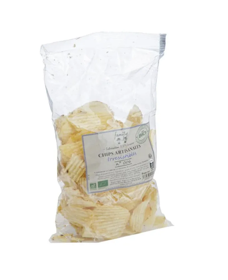 | Composition | Huile de tournesol , pomme de terre, sel de camargue, ingrédients issus de l’agriculture biologique