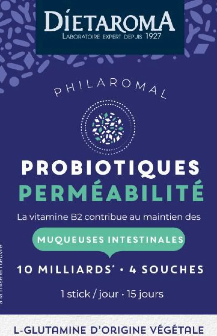 | Composition | Maltodextrine* ; L-glutamine d’origine végétale (issu de maïs) ; extrait de feuille de mélisse (Melissa officinalis) ; souches probiotiques : Lactobacillus acidophilus, Lactobacillus casei, Streptococcus thermophilus, Lactobacillus rhamnosus GG ; vitamine B2 (riboflavine).