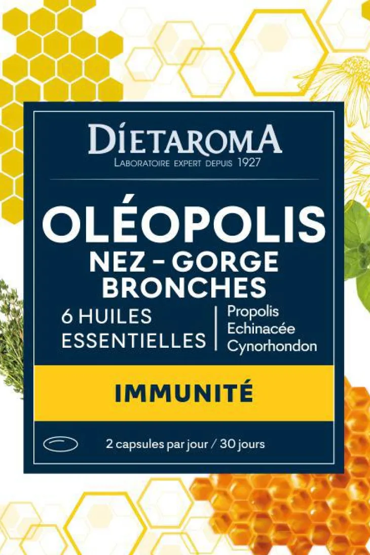 | Composition | Huile de pépins de tournesol (Helianthus annuus), gélatine de poisson, extrait de propolis, affermissant : glycérol, échinacée (Echinacea purpurea), jus concentré d’herbe, églantier extrait sec de fruit (Rosa canina) enrichi en vitamine C, épaississant : cire d’abeille jaune, amidon de maïs, émulsifiant : lécithine de colza, huiles essentielles de : girofle clous boutons floraux (Eugenia caryophyllus), thym feuille (Thymus vulgaris), cannelle de Ceylan écorce (Cynnamomum zeylanicum), origan sommités fleuries (Origanum vulgare), ravintsara feuille (Cynnamomum camphora) lavandin grosso sommités fleuries (Lavandula hybrida grosso).