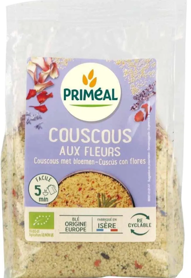 | Conseils d’entretien | . Verser la préparation dans un grand saladier. Ajouter 500 ml d’eau chaude ou l’équivalent en volume du couscous aux fleurs. . Couvrir et laisser reposer quelques minutes.. Lorsque la semoule est bien gonflée, aérer avec une fourchette.. Pour une utilisation en salade, ajouter éventuellement des petits cubes de concombre ou d’avocats suivant la saison etdes fleurs fraîches comestibles !. Egalement plat d’accompagnement raffiné pour protéines végétales, poisson ou volaille.