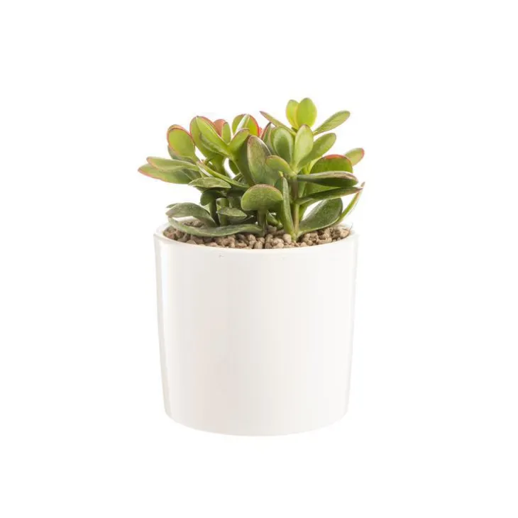 Crassula sunset en pot blanc émaillé H 10 x Ø 15 cm