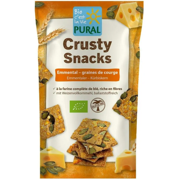| Composition | farine de BLÉ complète* (71%), EMMENTAL* (15%), graines de courge* (11%), huile de tournesol*, graines de lin*, sel de mer, levure, extrait de malt d ORGE* * Ingrédients issus de l’Agriculture Biologique
