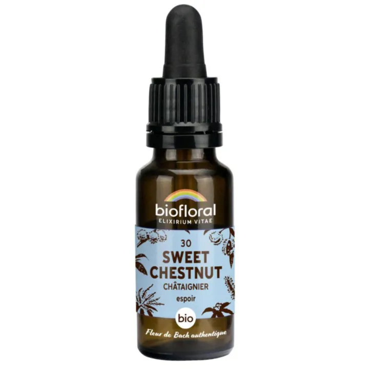 | Composition | Cognac bio* Demeter**, préparation d’eau de source à la Fleur de Bach bio* selon la méthode originale (Sweet Chestnut / Castanea sativa) à 1/240e. *Ingrédients issus de l’Agriculture Biologique et **Biodynamique.