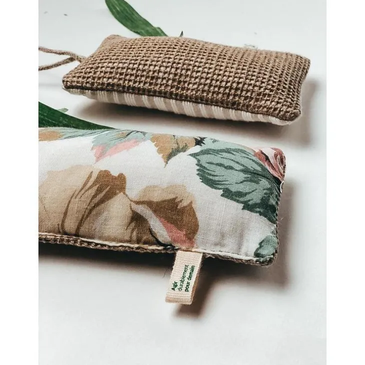 | Composition | une face douce en tissu (coton ou lin) et une face grattante en lin. Interieur en Kapok (fibre végétale)