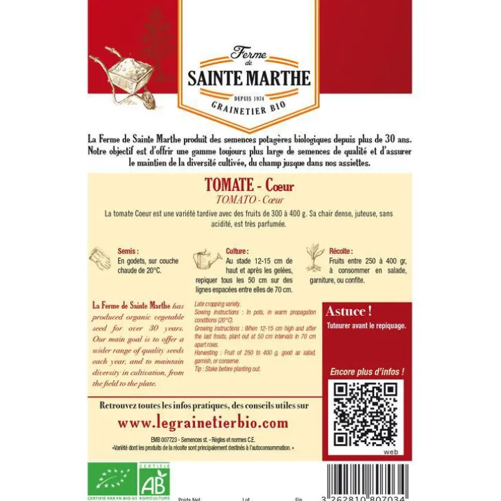 | Conditionnement | SACHET DE GRAINES