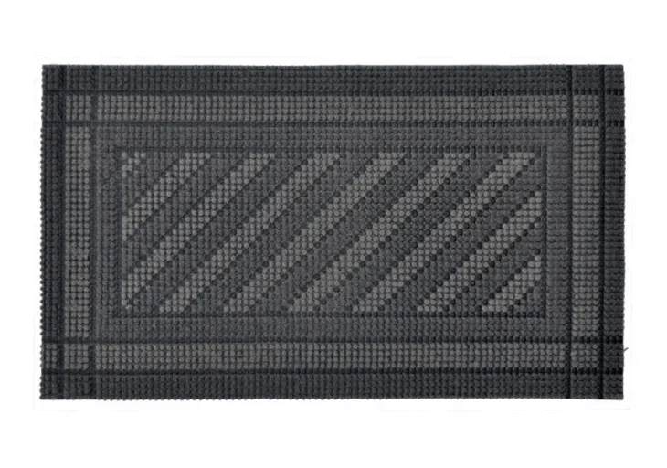 Tapis rectangulaire en coton coloris blanc et bleu avec des lignes – 60 x 90 cm