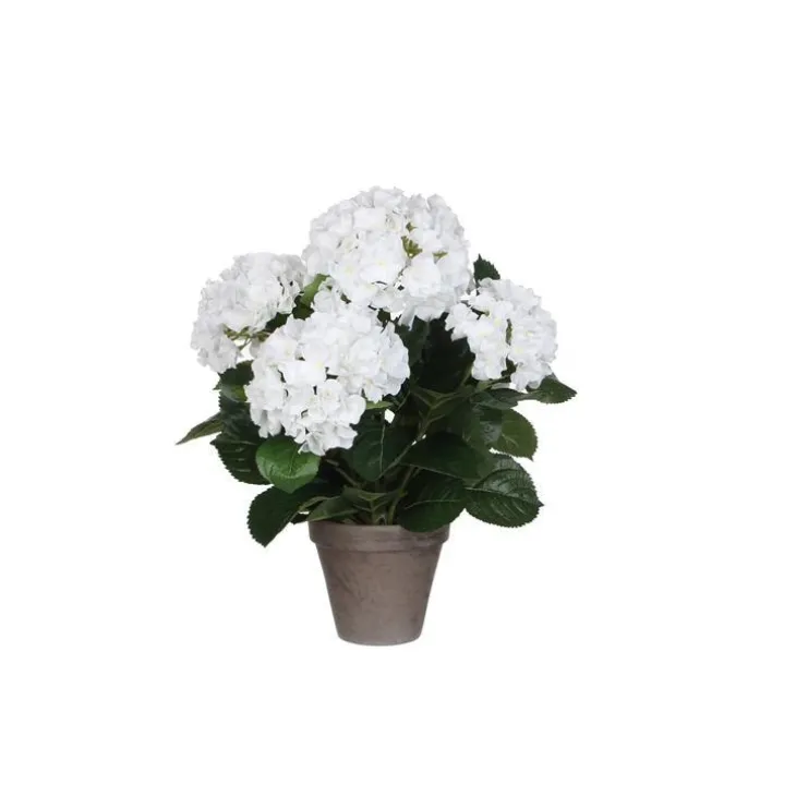Hortensia blanc fleur artificielle en pot Stan gris H 45 x Ø 45 cm cm