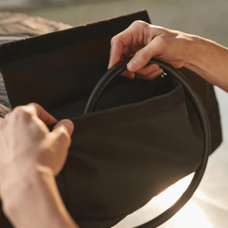 Cache-pot vannerie naturelle avec rebord noir coloris beige – 18 x 16 x 13,5 cm