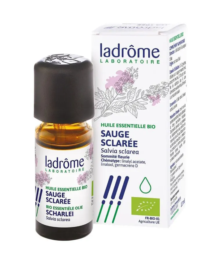 | Conseils d’entretien | Pour aider à passer le cap de la ménopause :- Massez le bas du ventre avec le mélange suivant : 2 à 3 gouttes d’HE de sauge bio diluée dans une huile végétale neutre.- Dans un bain chaud pour se relaxer : ajoutez 2 gouttes de sauge sclarée + 2 gouttes d’huile essentielle de lavande fine + 3 gouttes d’huile essentielle bio d’orange amère, préalablement diluées dans du Disp’arôme.- Mettez 2 gouttes d’huile essentielle de sauge sclarée dans une cuillère à café de miel et prenez 2 à 3 fois par jour, pendant 3 semaines. Il est conseillé de faire une pause d’une semaine entre 2 cures.Pour favoriser une bonne circulation sanguine :- Massez les zones correspondantes comme les jambes avec le mélange suivant : 2 gouttes d’huile essentielle de sauge + 4 gouttes d’huile essentielle bio de cyprès, préalablement diluées dans de l’huile d’arnica bio.- Diluez 5 à 10 gouttes d’huile essentielle bio de sauge dans du Disparome et ajoutez le tout à l’eau de votre bain.Pour purifier les peaux grasses et traiter les boutons disgracieux :- Mettre de l’huile de jojoba aux vertus équilibrantes dans votre main puis ajoutez 2 à 3 gouttes d’HE de sauge sclarée. Massez ensuite les zones à traiter.Pour assainir le cuir chevelu des cheveux gras ou avec des pellicules :- Ajoutez 1 à 2 gouttes d’huile essentielle dans votre shampoing.