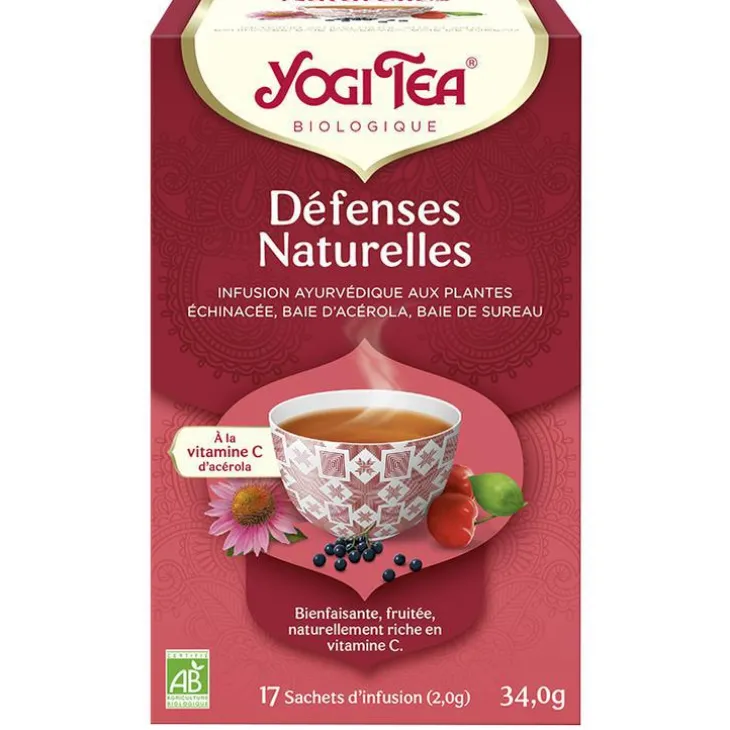 | Conseils d’entretien | Lors du changement de saison , notre système immunitaire peut parfois avoir besoin d’un petit coup de pouce.C ‘est le moment de vous offrir un tasse d infusion YOGI TEA Défenses naturelles.La saveur douce-amère de l’échinacea s’accompagne de baies de sureau fruitées et de basilic aromatique.La vitamine C naturelle et précieuse de la cerise acérola soutient naturellement notre mécanisme de défense.