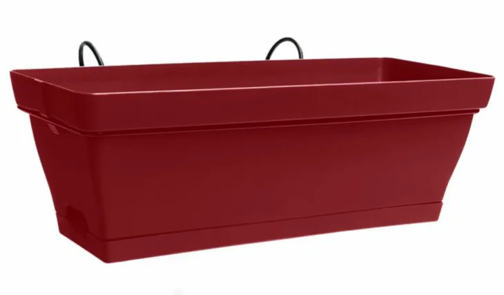 Jardinière en plastique rouge cerise avec soucoupe clipsée et support Poetic BabyRomeo – 28 x 16 x 10 cm
