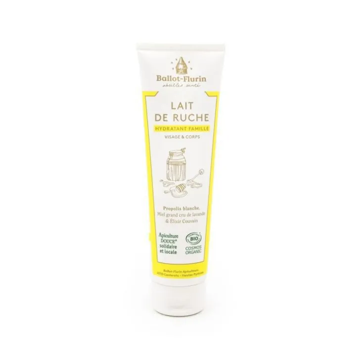 | Conseils d’entretien | Propolis blanche de terroir : pour son action assainissante et revitalisante. Brevet déposé. Extrait de propolis jaune : protège et adoucit la peau. Miel de lavande dynamisé de nos ruchers : nourrit & stimule. Macérat de fleurs de calendula françaises fait maison : apaise les peaux sensible. Élixir de la Ruche® « Couvain » : pour se sentir protéger et vivre activement avec confiance.Ce lait bienfaiteur fait maison hydrate au quotidien et préserve les peaux délicates des familles natures et actives. Idéal en hiver pour se mettre à l’abri du froid.