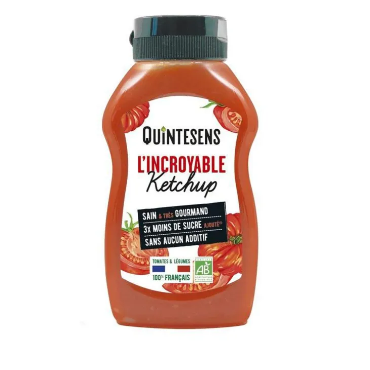 | Composition | Tomates* (41%), légumes* (38%) (carotte*, bettrave*, pomme de terre*, oignon*), vinaigre d’alcool*, jus de pomme concentré*, sucre de canne équitable*, sel, huile de tournesol vierge*, épices*.