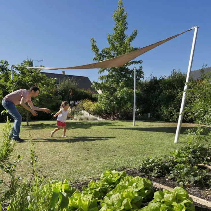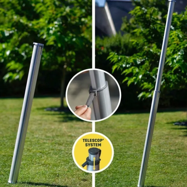 | Conseils d’entretien | LE CHOIX DE LA VOILE : Afin de faciliter le montage et la préservation des mâts, nous recommandons l’utilisation de voiles ajourées d’une surface de 12m² et d’une densité de 280g/m² maximum. Les voiles d’ombrage GARD & ROCK (ref 428-6XX-XX) seront les plus appropriés pour bénéficier d’un ombrage de qualité.Si vous souhaitez une dimension plus importante, dans ce cas il faut opter pour des filets de camouflage (sans prise au vent) d’une surface maximale de 20m2 (5x4m par exemple).CRÉEZ votre Tonnelle personalisée : Installez 3 à 4 mâts et fixez-y une voile d’ombrage triangulaire ou rectangulaire. Vous bénéficierez d’une installation design et amovible.Fixez des voiles d’ombrage en façade de votre maison ou de votre véranda puis installez des mâts amovibles Gard&Rock afin de créer un 3ème et/ou 4ème point d’accroche. Vous augmenterez ainsi votre surface ombragée, atout majeur pour mieux profiter de votre jardin l’été en vous apportant de la fraîcheur!Afin d’assurer une fixation optimale et notamment en cas de terrain meuble, nous recommandons de sceller la base d’ancrage dans du béton. Le mode opératoire est indiqué sur la notice et nous vous invitons à visualiser cette vidéo: https://bit.ly/40mV1MeDans la même gamme évolutive Gard&Rock : Base d’ancrage (428-001) / Pied pour parasol droit (428-002) / Kit Poteaux Multisports (428-003) / Borne solaire (428-005) / Pied pour parasol déporté (428-007) / Poteau pour Hamac (428-014)
