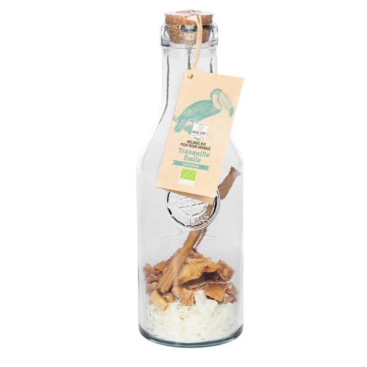 | Composition | Ingrédients : mangue*, noix de coco* 33,3 %, banane* 12,5 % (banane*, huile de coco*, sucre de canne*), ananas* , cannelle*. * issus de l’agriculture biologique.