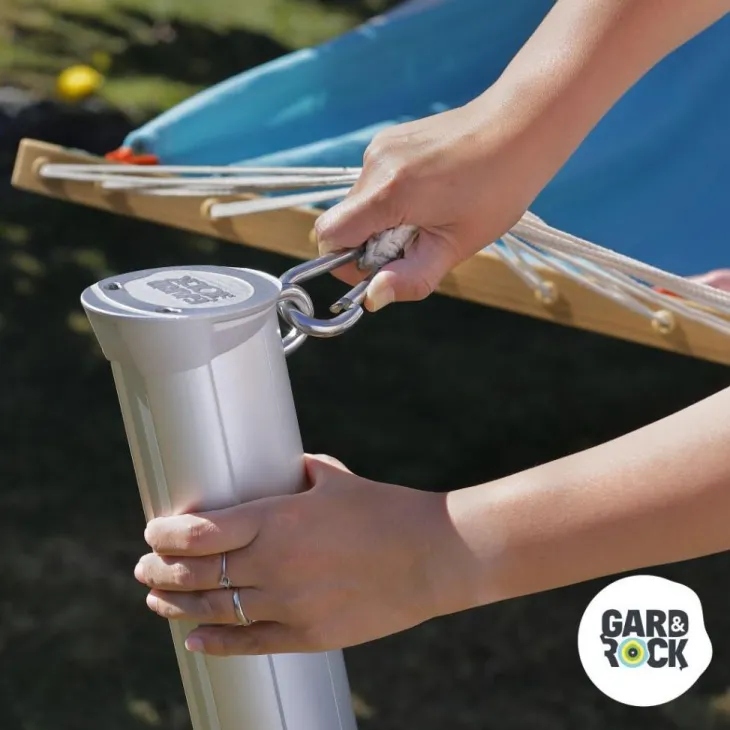| Conseils d’entretien | Associé avec les Mâts Télescopiques Gard&Rock (ref 428-011) ou les Poteaux de Hamac (ref 428-014), vous pourrez rapidement installer et retirer votre matériel.Utilisez les cordons Gard&Rock pour ajuster facilement la longueur de vos voiles.Dans la même gamme évolutive Gard&Rock : Base d’ancrage (428-001), Pied pour parasol droit (428-002), Kit Poteaux Multisports (428-003), Borne solaire (428-005), Pied pour parasol déporté (428-007), Mât pour voile d’ombrage (428-011), Poteau pour Hamac (428-014)
