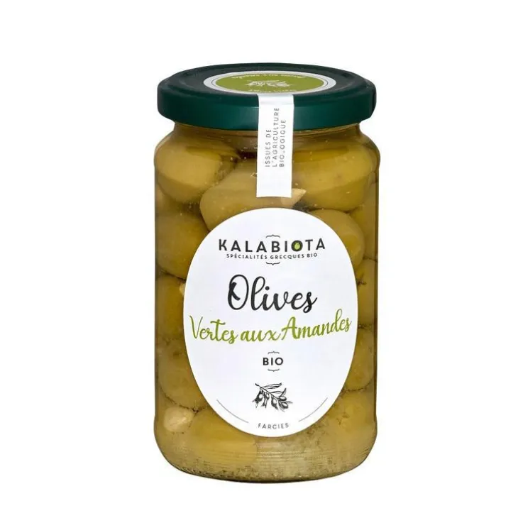 | Composition | Olives vertes* ( 45,6% ), Eau ( 38,54%), Amandes* (10,69%), Sel de mer (5%), Jus de citron* (0,12%).