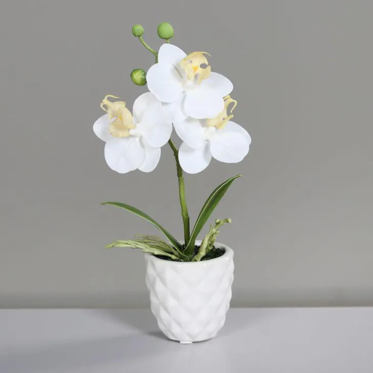 Orchidée artificielle blanche avec pot en céramique crème – 25 cm