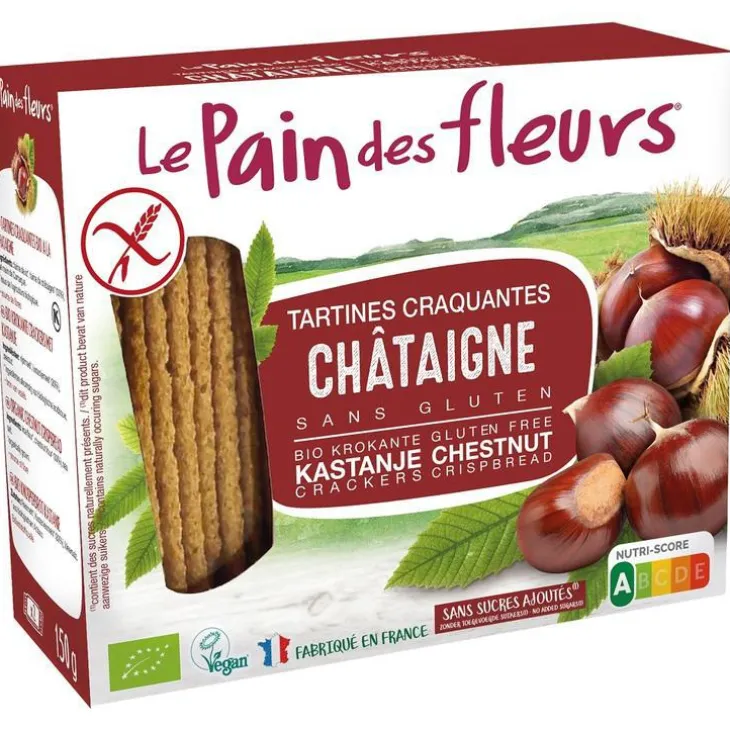 | Composition | Farine de riz*, farine de châtaigne* (30%), sel marin. *issues de l’agriculture biologique