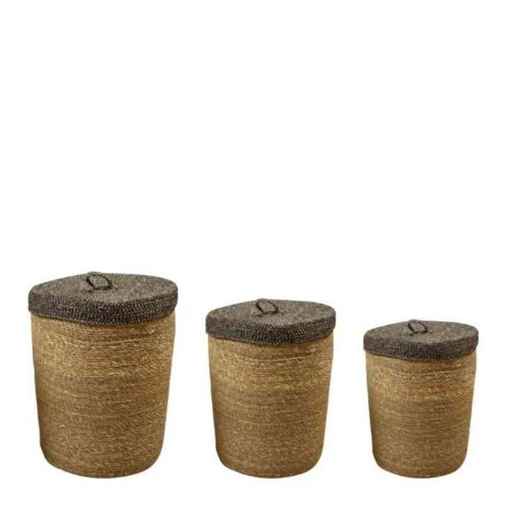 Cache-pot vannerie naturelle avec rebord blanc coloris beige – 24 x 22,5 x 18 cm