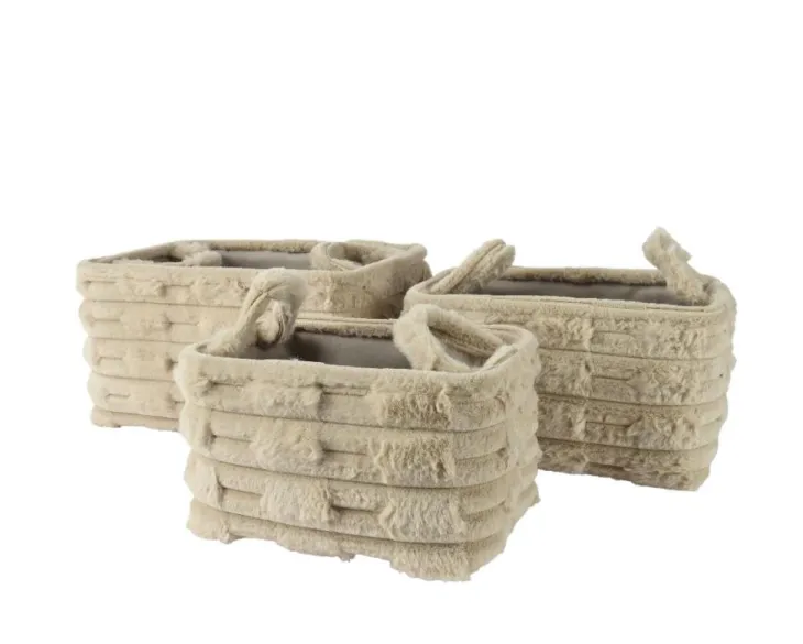 Cache-pot vannerie naturelle avec rebord blanc coloris beige – 24 x 22,5 x 18 cm