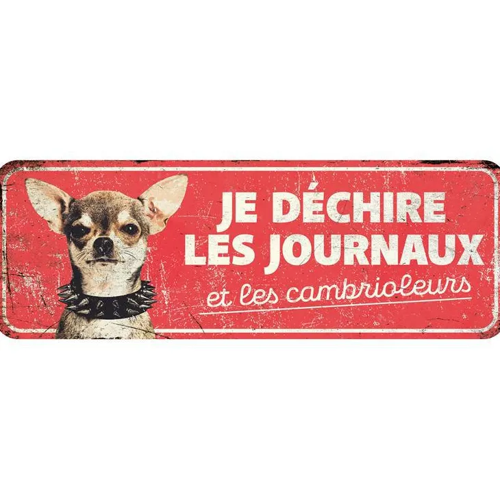 Panneau d'avertissement chihuahua coloris rouge en métal galvanisé D&D Home - 40 x 13 x 0,3 cm