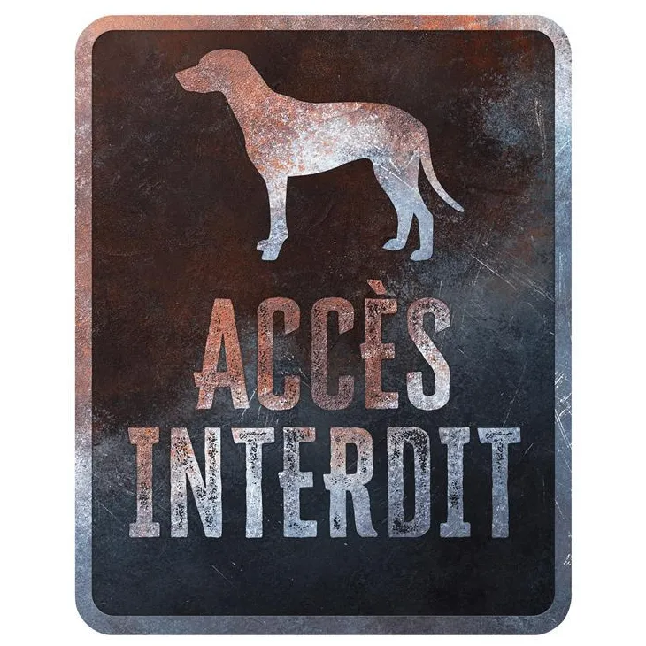 | Conseils d’entretien | Grâce à ce panneau d’avertissement, les visiteurs indésirables y réfléchiront à deux fois avant d’entrer. Les panneaux d’avertissement D&D sont des panneaux en métal de qualité supérieure et inoxydable avec des textes amusants et une image de chien dans un style délavé. Ils feront sourire tous les passants ! Les panneaux sont faciles à installer à l’entrée de votre maison, sur le portail, à la fenêtre, etc. Les panneaux sont disponibles en 14 races de chiens différentes et 4 langues : néerlandais, français, anglais et allemand.