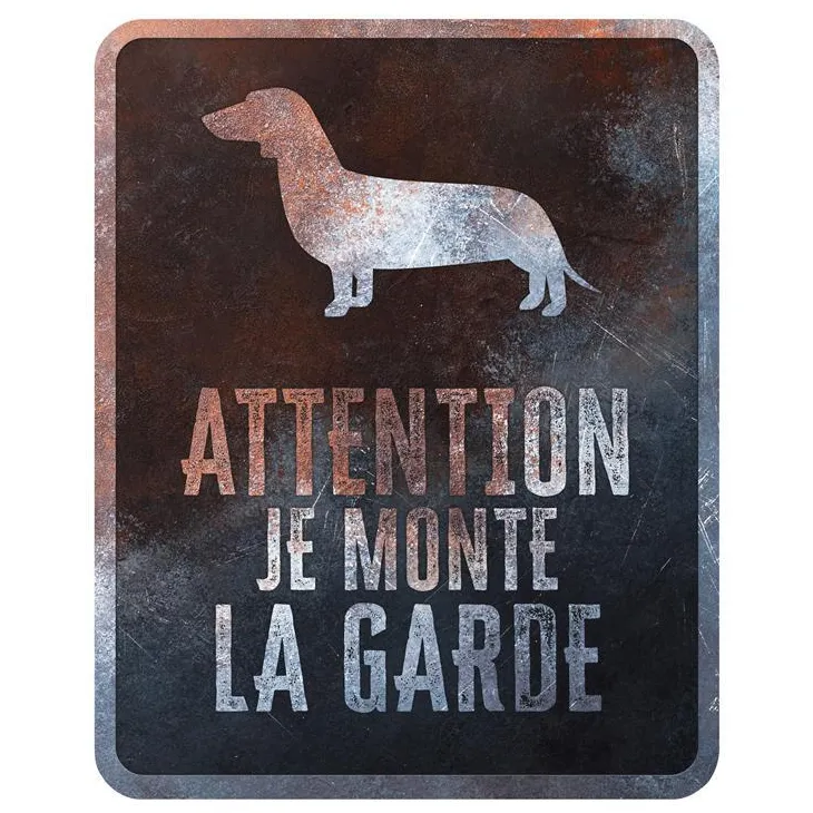 | Conseils d’entretien | Grâce à ce panneau d’avertissement, les visiteurs indésirables y réfléchiront à deux fois avant d’entrer. Les panneaux d’avertissement D&D sont des panneaux en métal de qualité supérieure et inoxydable avec des textes amusants et une image de chien dans un style délavé. Ils feront sourire tous les passants ! Les panneaux sont faciles à installer à l’entrée de votre maison, sur le portail, à la fenêtre, etc. Les panneaux sont disponibles en 14 races de chiens différentes et 4 langues : néerlandais, français, anglais et allemand.