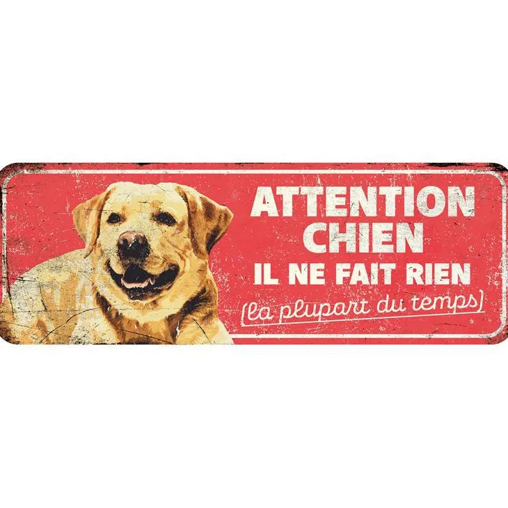Panneau d'avertissement labrador coloris rouge en métal galvanisé D&D Home - 40 x 13 x 0,3 cm