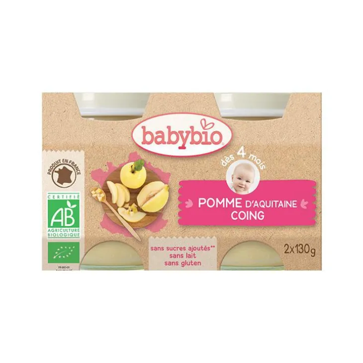 | Composition | Pommes d’Aquitaine* 73%, purée de coings* 27% (coings*, eau), antioxydant: acide ascorbique. * Ingrédients issus de l’agriculture biologique