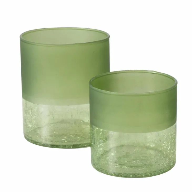 Porte bougie en céramique bicolore naturel/vert petit modèle – Ø 10 x H 17,5 cm