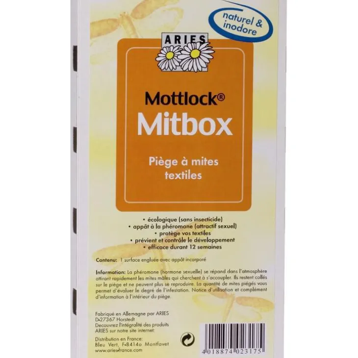 | Équipement(s) de protection | Le piège est activé dès que le film protecteur a été retiré. Poser la Mitbox aux endroits exposés ou la suspendre à une tringle. Durée d’action : 3 mois.