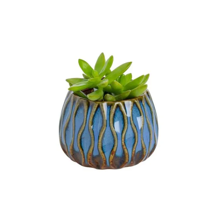 Porte bougie en céramique bicolore naturel/vert petit modèle – Ø 10 x H 17,5 cm