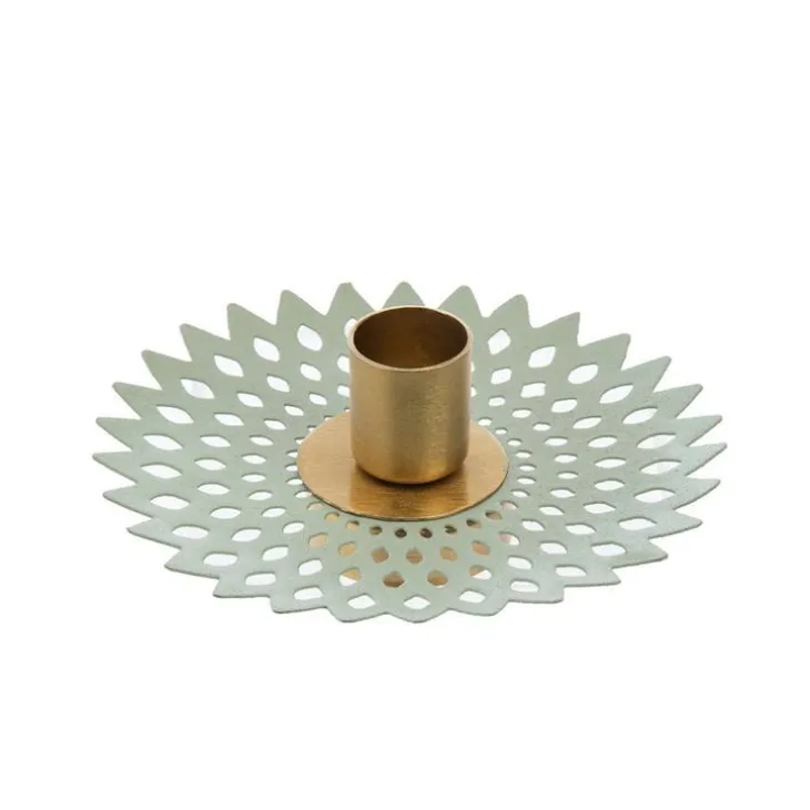 Porte-bougie forme feuille en métal vert et or – Ø 13 x 4 cm