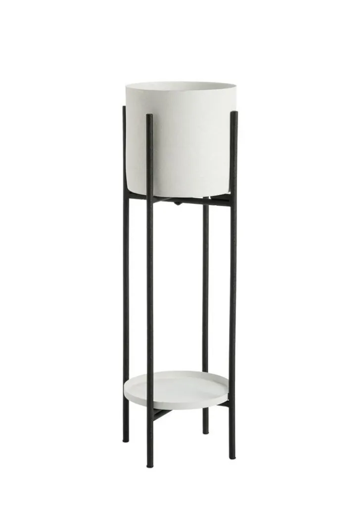 Cache-pot vannerie naturelle avec rebord blanc coloris beige – 24 x 22,5 x 18 cm
