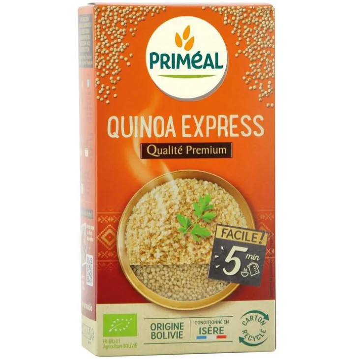 | Conseils d’entretien | Facile, sans cuisson : 1 vol de quinoa express (= 60g) + 1 volume d’eau bouillante (= 120 ml), remuer, laisser reposer 5 min (8 min pour un quinoa fondant). 250 g = 4/5 personnes