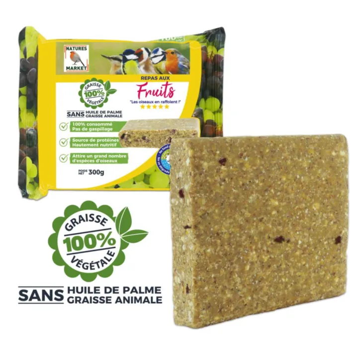 | Conseils d’entretien | A glisser dans une mangeoire grillagée ou une mangeoire « à balcons » prévue pour les repas de graisse