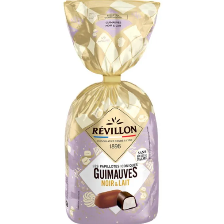 | Composition | Sirop de glucose-fructose, sucre, pâte de cacao1*, eau, beurre de cacao1, LAIT en poudre entier, gélifiant : gélatine (porc), lactosérum en poudre (LAIT), beurre concentré (LAIT) émulsifiant : lécithines, arôme naturel de vanille, arôme. *Feves de cacao origine Afrique de l’Ouest / 1Certifié Rainforest Alliance. Plus d’informations sur ra.org..