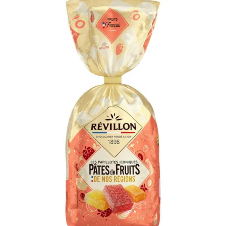 | Composition | Sucre, sirop de glucose, purée de pommes (pommes origine France), purée de fraises 7% (fraises origine Auvergne-Rhone-Alpes), purée d’abricots 7% (abricots origine Occitanie), purée de poires 7% (poires origine Provence Alpes Côte d’Azur), gélifiant : pectine, jus de citron concentré, arômes naturels de : poire, abricot et fraise, anti oxydant : acide ascorbique.