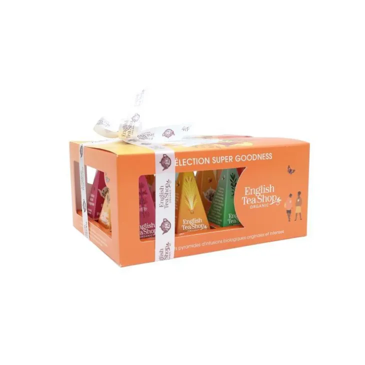 | Composition | x2 ROOIBOS, BAIE D’AÇAÏ & GRENADE – Infusion biologique de rooibos, d’honeybush et d’hibiscus, aromatisée à la grenade et à la baie d’açaï. rooibos* (59,5%), honeybush* (19%), hibiscus* (14%), arômes naturels (5%), grenade* (1%), framboise* (1%), baie d’açaï* (0,5%). x2 CURCUMA, GINGEMBRE & CITRONNELLE – Infusion biologique de gingembre, de curcuma, de citronnelle, de réglisse, de clou de girofle, de citron, de cardamome, de poivre et de graines de cumin. gingembre* (30%), curcuma* (30%), citronnelle* (14%), réglisse* (7%), clou de girofle* (6%), zeste de citron* (4%), cardamome* (4%), poivre noir* (3%), graines de cumin* (2%). Contient de la réglisse. x2 CRANBERRY, HIBISCUS & BAIE D’ÉGLANTIER – Infusion biologique d’hibiscus, de baie d’églantier, de citronnelle, de gingembre et de garcinia, aromatisée au cranberry. hibiscus* (33%), baie d’églantier* (26%), citronnelle* (25,5%), gingembre* (6%), arômes naturels (5%), feuilles de garcinia* (4%), cranberry* (0,5%). x2 CANNELLE DE CEYLAN – Infusion biologique de cannelle, de gingembre et de cardamome. cannelle* (90%), gingembre* (6%) et cardamome* (4%). x2 BETTERAVE, GINGEMBRE & FEUILLES DE CURRY – Infusion biologique de betterave, de carotte, de gingembre, de feuilles de curry et de persil. betterave* (41%), carotte* (23%), gingembre* (15%), feuilles de curry* (15%), persil* (6%). x2 CACAO, CANNELLE & GINGEMBRE – Infusion biologique de cacao, de cannelle, de fenouil et de gingembre. cannelle* (45%), cacao* (35%), fenouil* (15%), gingembre* (5%). (*) Ingrédients issus de l’Agriculture Biologique.