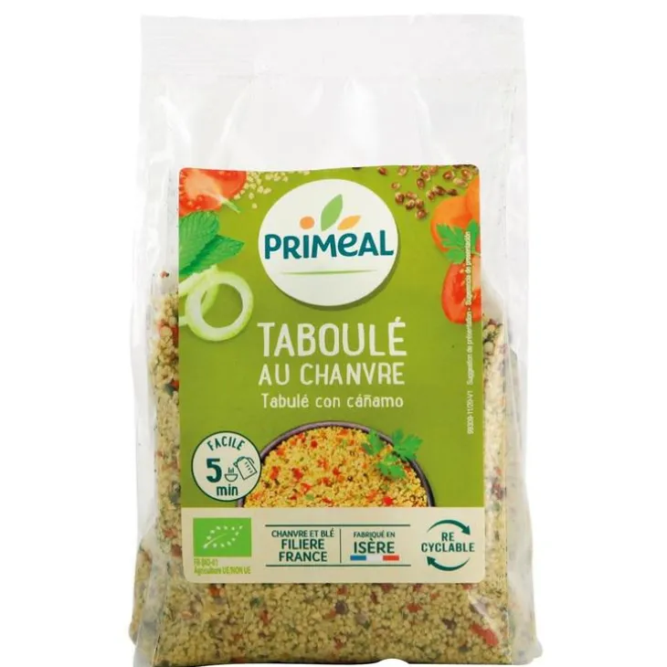 | Composition | Semoule de BLE* demi-complète France, graines de chanvre* (entières et décortiquées) (8%) , tomate*, sel marin, oignon*, persil*, carotte*, paillettes d’huile essentielle de citron* (agave*, huile essentielle de citron*), menthe*. *issus de l’agriculture biologique